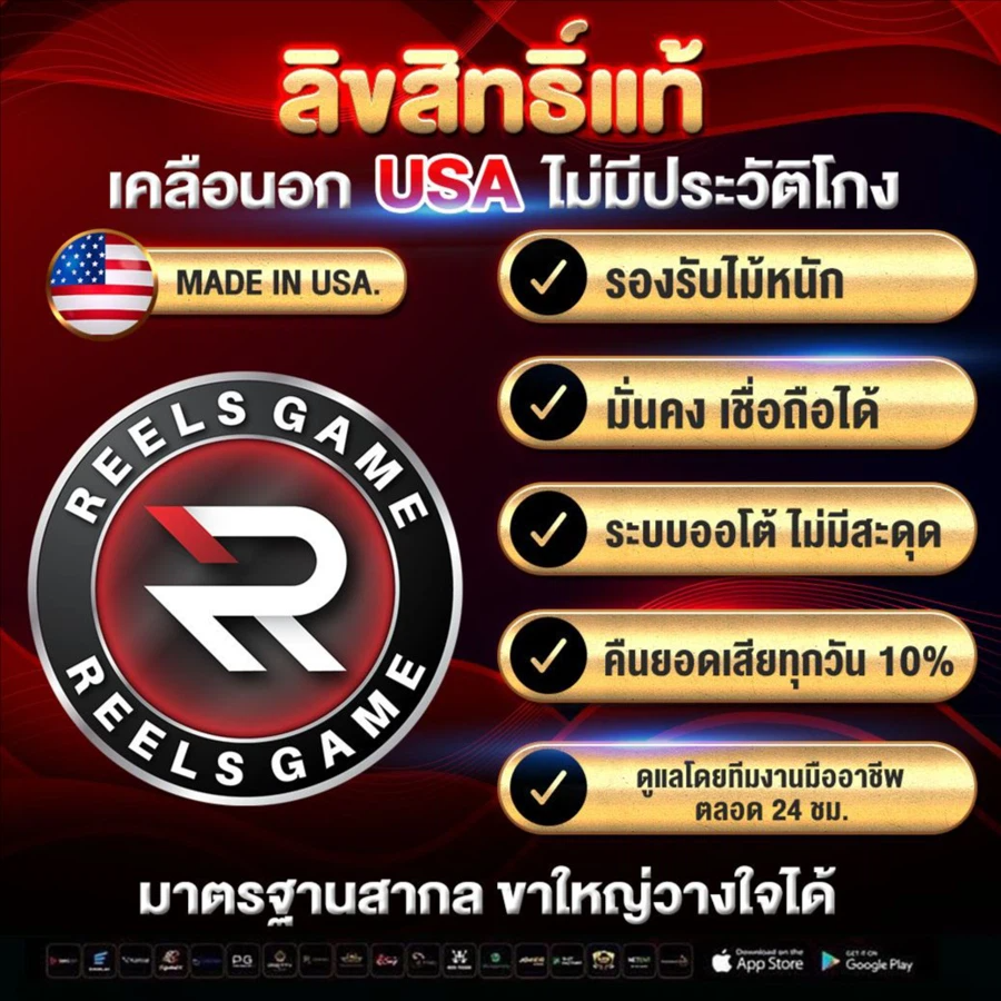 REELSGAME เว็บพนันออนไลน์ที่รวบรวมเกมพนันหลากหลายรูปแบบ โดดเด่นด้วยสล็อตออนไลน์มากกว่า 1,000 เกม จากค่ายดังระดับโลก ระบบฝาก-ถอนอัตโนมัติ 24 ชั่วโมง รองรับธนาคารชั้นนำและ True Money Wallet เริ่มต้นเดิมพันเพียง 1 บาท พร้อมโปรโมชั่นต้อนรับสมาชิกใหม่ 100% มีระบบทดลองเล่นฟรีให้ผู้เล่นได้ทดสอบก่อนลงเดิมพันจริง รองรับการเล่นผ่านมือถือทุกระบบ มีทีมงานซัพพอร์ตตลอด 24 ชม. เว็บได้รับใบอนุญาตถูกต้อง มีความมั่นคงทางการเงินสูง การันตีการจ่ายเงินจริง ข้อมูลผู้เล่นถูกเก็บเป็นความลับด้วยระบบเข้ารหัส SSL 256-bit เพื่อความปลอดภัยสูงสุด